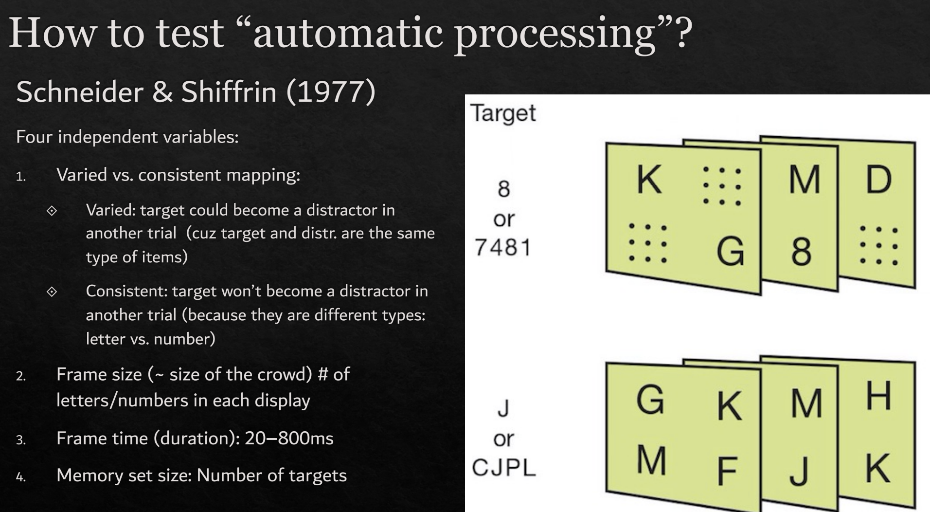 Using the Schneider & Shiffrin (1977) visual search task: