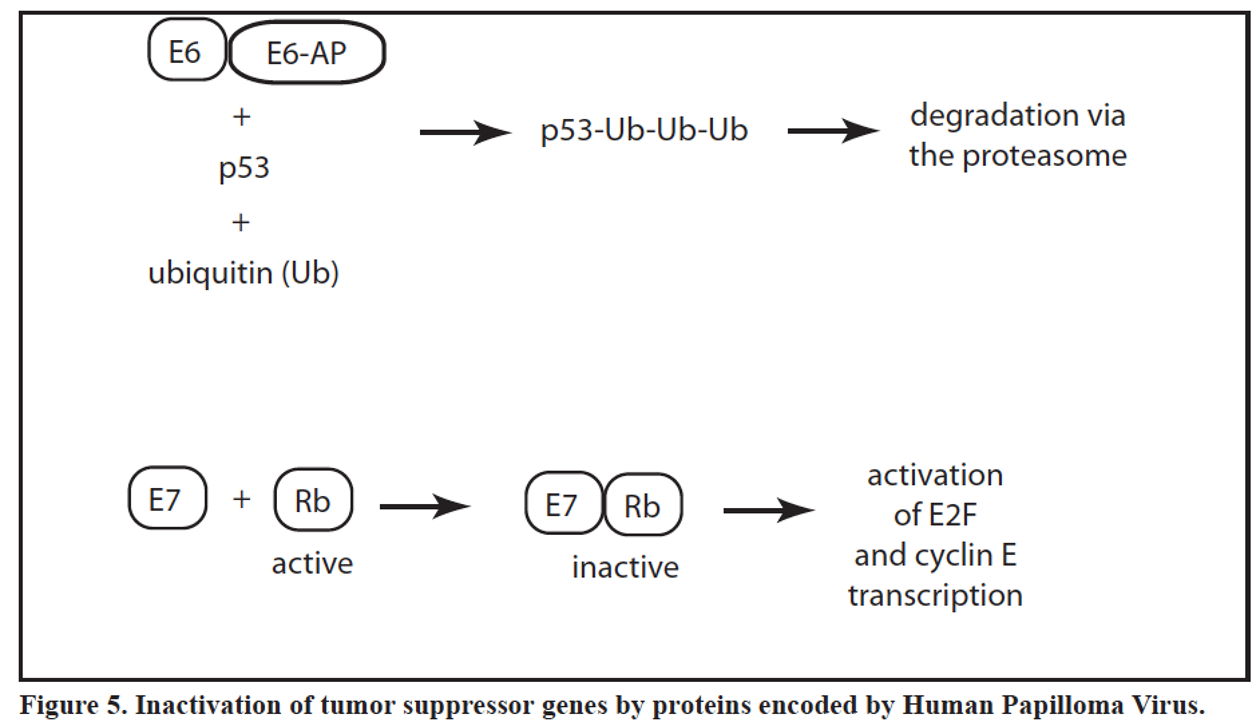 HPV upregulates E6 binds p53 leading to degradation of p53