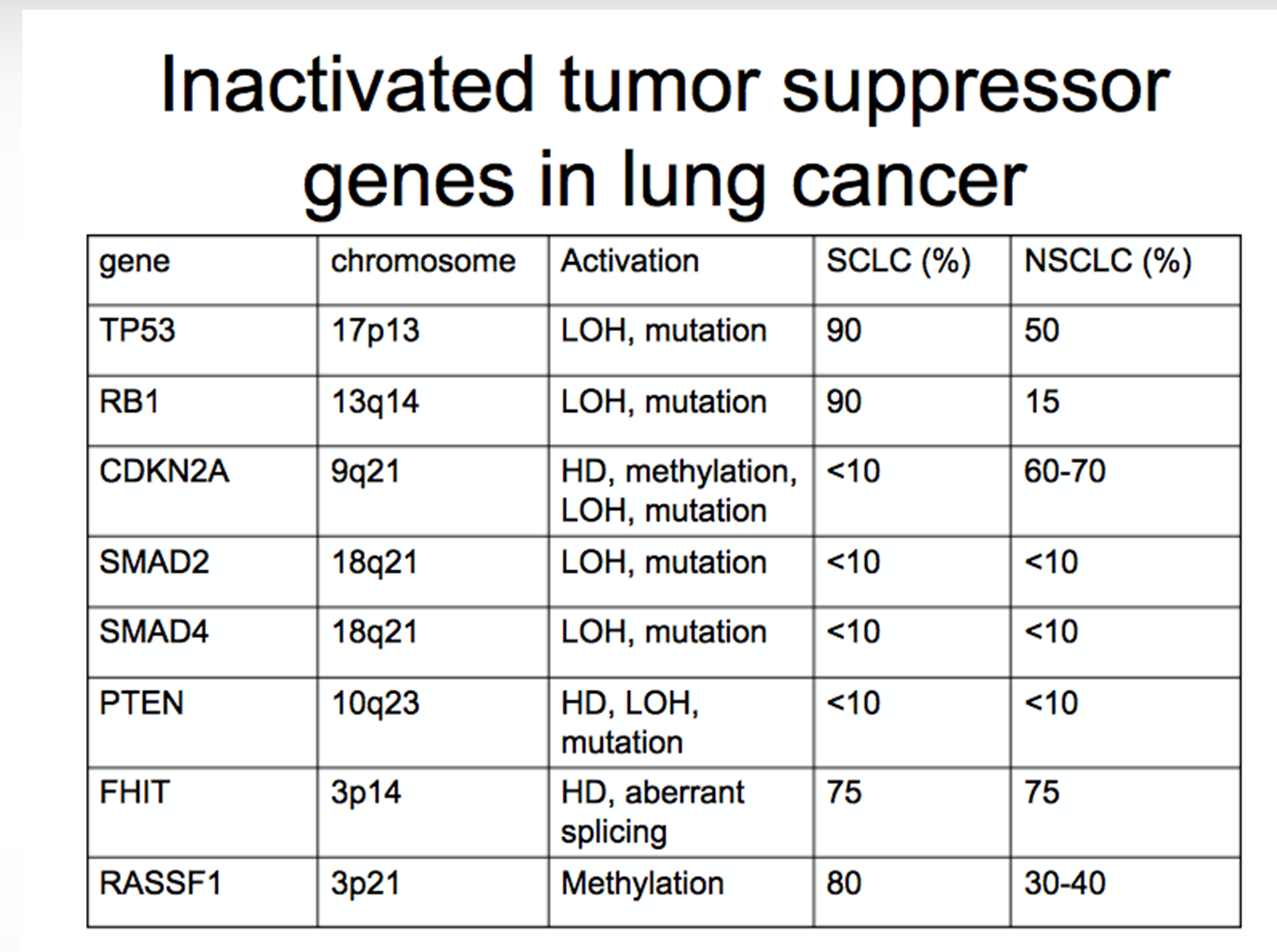 Tumor suppressor gene chart