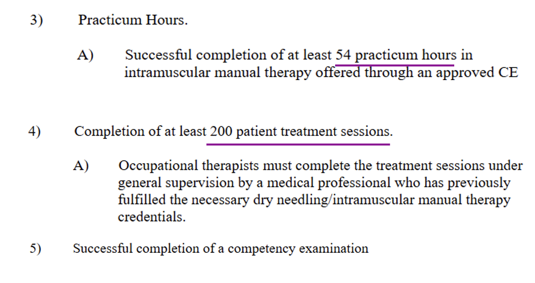 Training shall be completed prior to the use of these modalities. Documentation shall include: