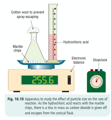 Draw a diagram + describe an experiment that shows how particle size affects rate of reaction