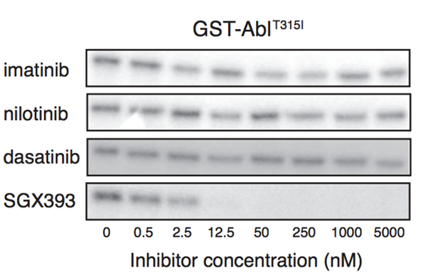 We can see from Western blots that this is the only drug which can inhibit mutant T315I