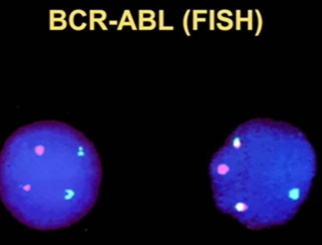 These fused proteins can be visualised by FISH (fluorescent in situ hybridisation)