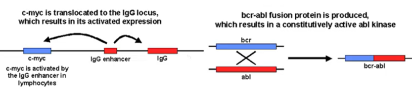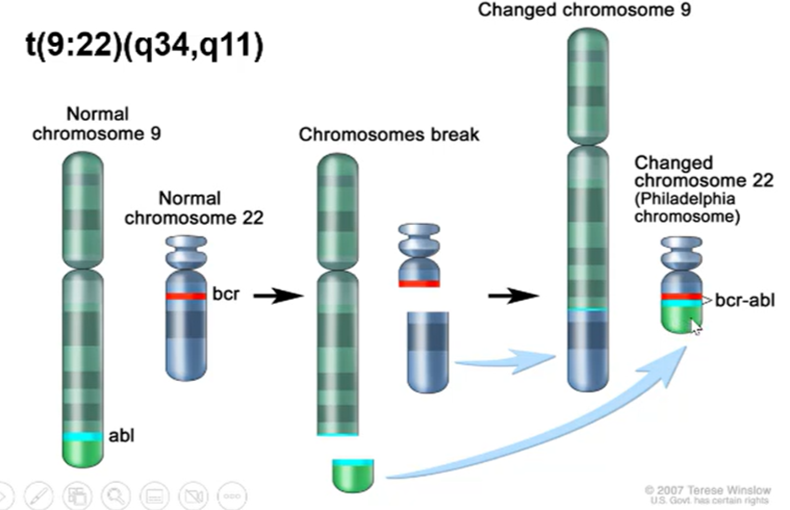 Results in a Philadelphia chromosome eliciting a fused protein
