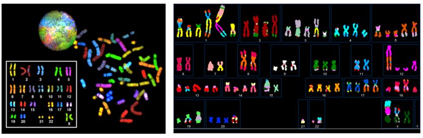 In the normal situation, the two colours are distinct, but when there’s a translocation, the colours are mixed