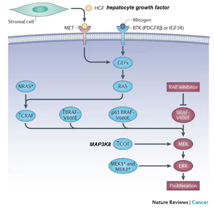 However, the cancer cells can reestablish the ERK surviving signals by: