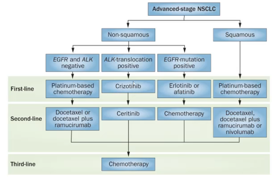 If the patient has a non-squamous cancer, such as EGFR mutation, can give erlotinib or afatinib —> if unsuccessful can use chemotherapy
