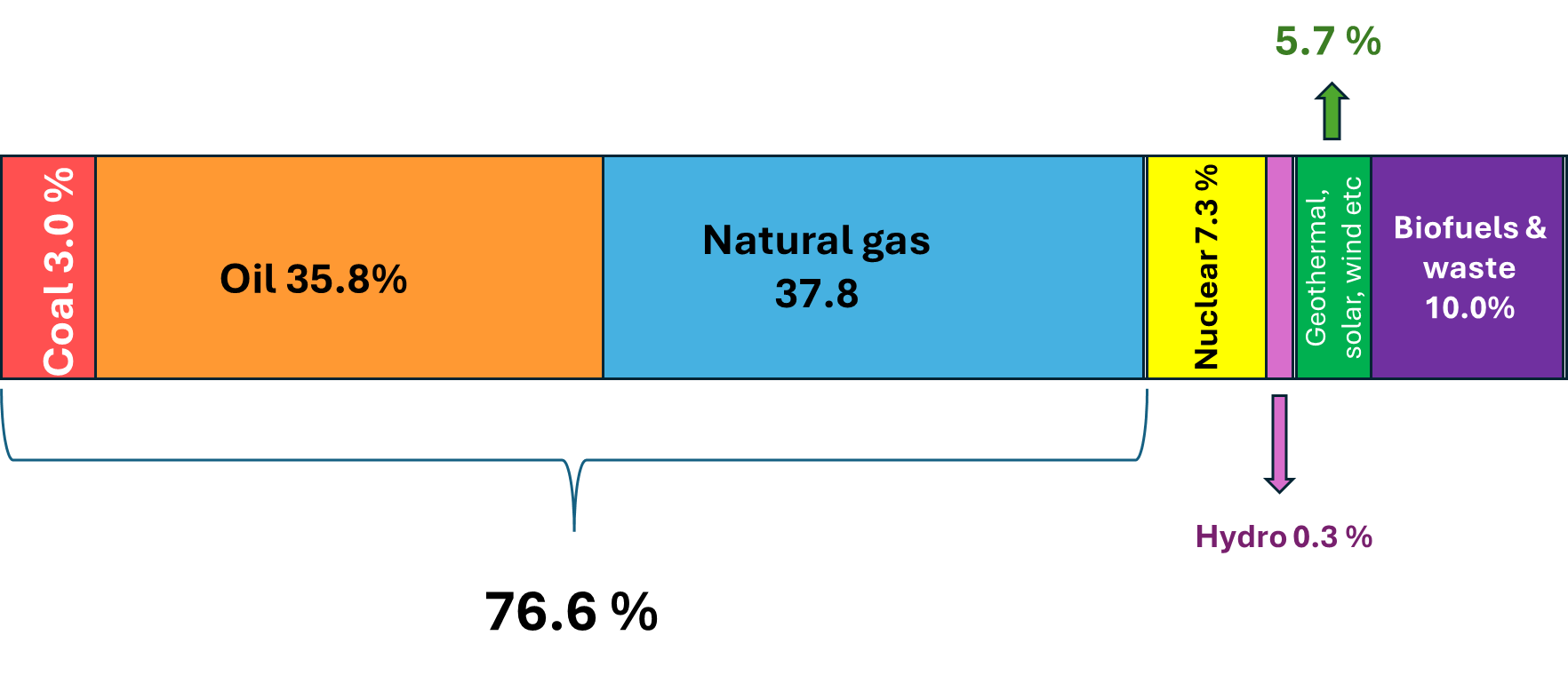Compare the UK’s (2) primary energy with the World’s primary energy (1)