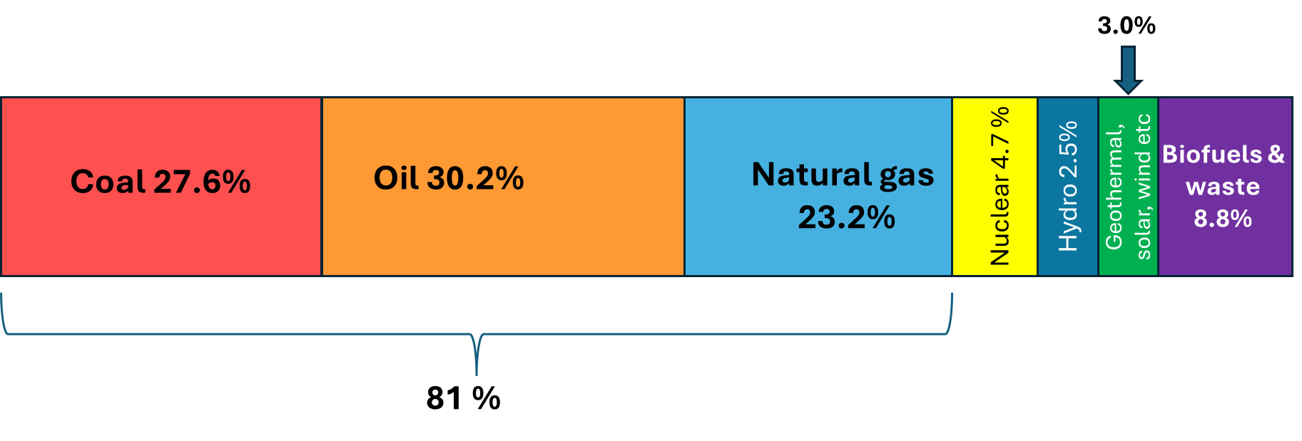 Sustainable energy would eventually eliminate dependence on fossil fuels,, which is responsible for huge greenhouse gas emissions