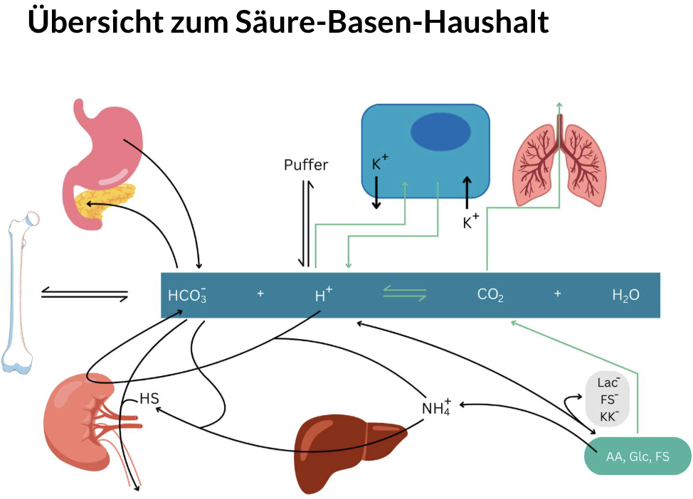 → somit geht ein Teil des Puffersystems verloren und reicht nicht aus um den Säure-Basen-Haushalt langfristig alleine zu regulieren