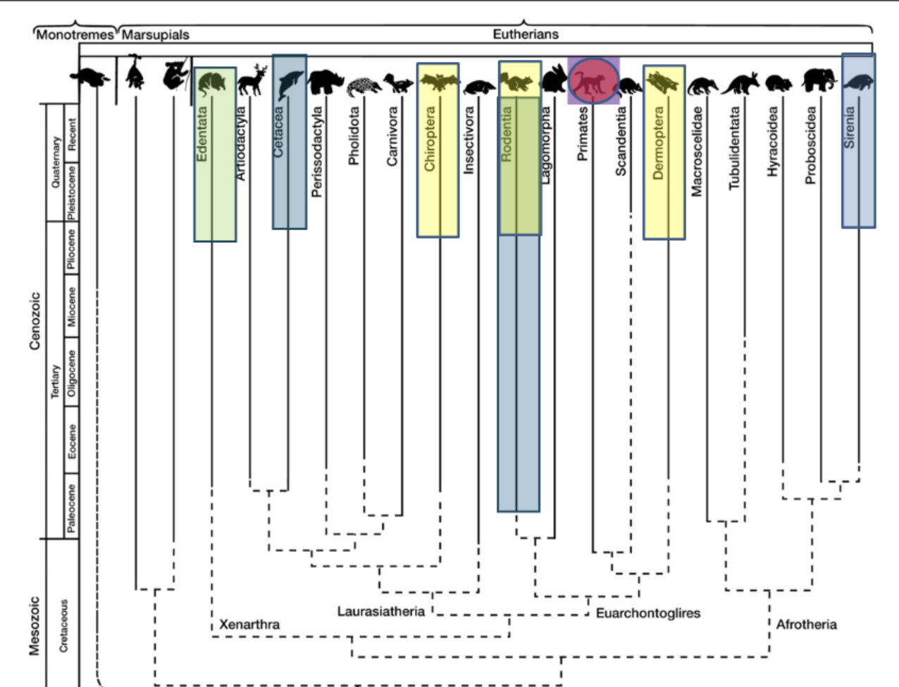 gnathostomes→ teleostomi → sarcopterygii → tetrapoda → amniota → synapsia→ mammalia→ theria→ ______ + eutheria