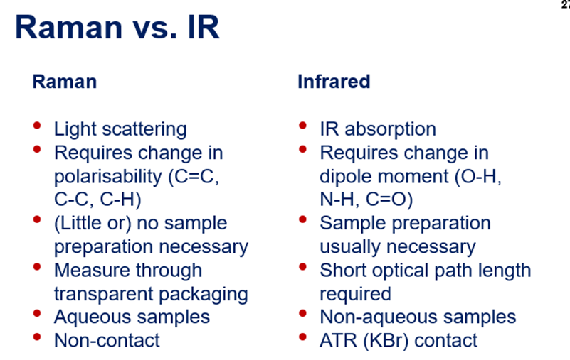 Raman - beware of heterogeneity – if a sample is not fully homogeneous, and care needs to be taken, when data is collected from point spectra.