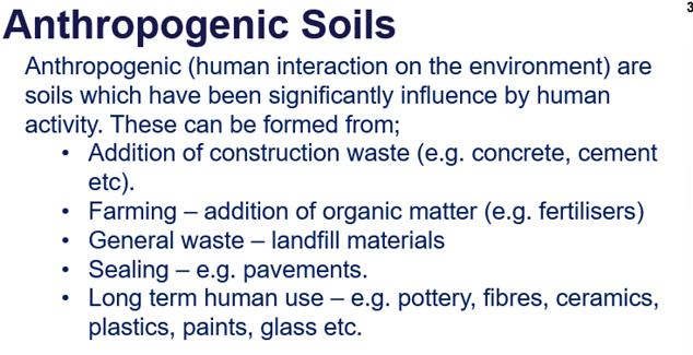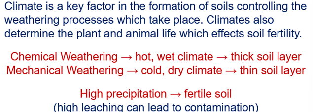- Properties of soil are dependent on how soils are formed, dependent on interlinked factors: