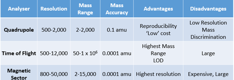 - Bulk analysis technique, less affected by fragment shape with a detection limit improved to 10-50 ppm.