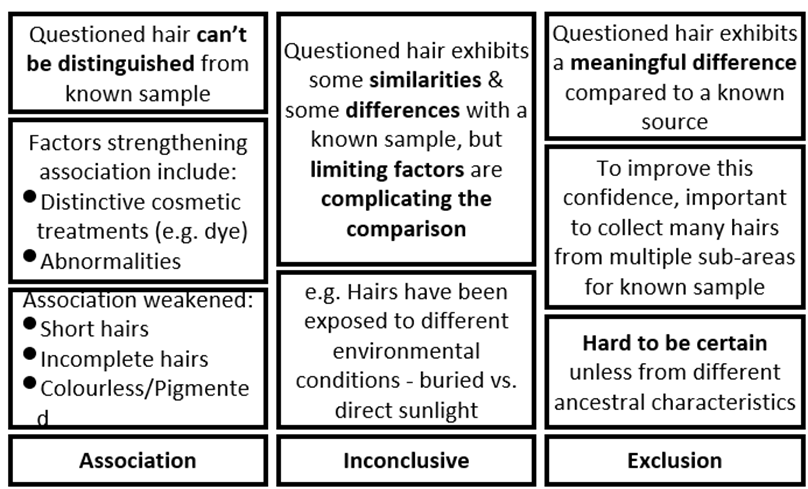 3 main conclusions drawn from interpretation of microscopical hair analysis