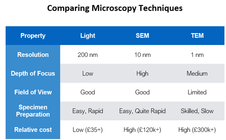 Types of Instrumentation: Microscopes + pros and cons (not darkfield and light field)