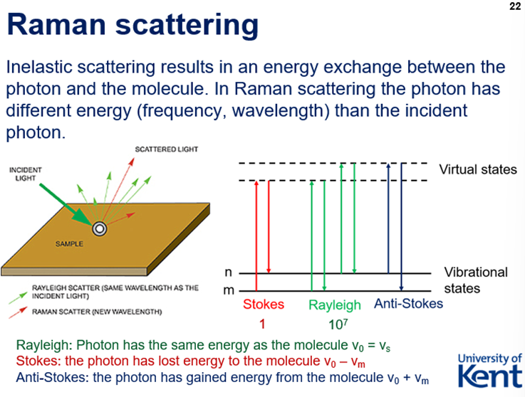 Inelastic = leaves the molecule in a different quantum state – Raman scattering