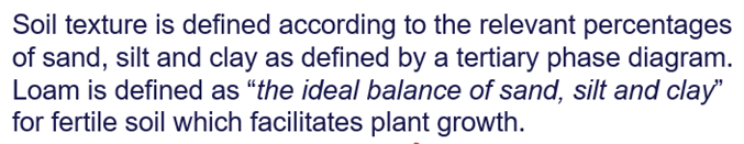 - Sand, silt, clay, loam à soil constituents defined by size.