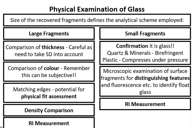 - SEM-EDX good, but micro XRF (uXRF) preferred for glass.