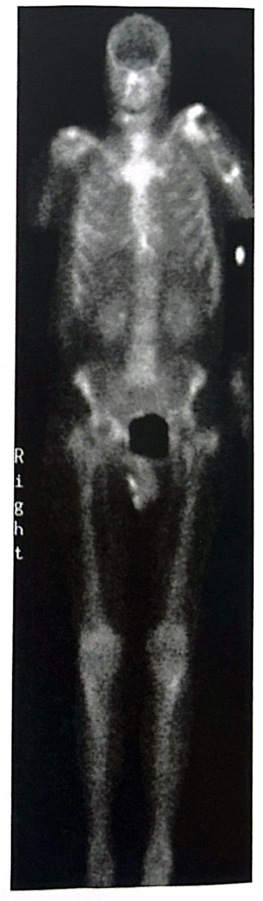 Which of the following describes a pediatric bone scan?