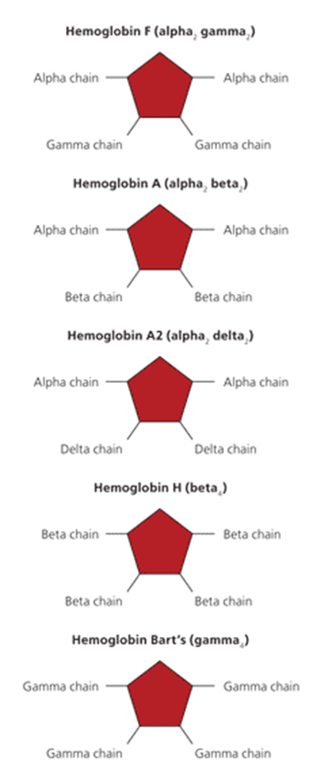 Reduced Alpha chains – alpha thalassemia; in utero or at birth