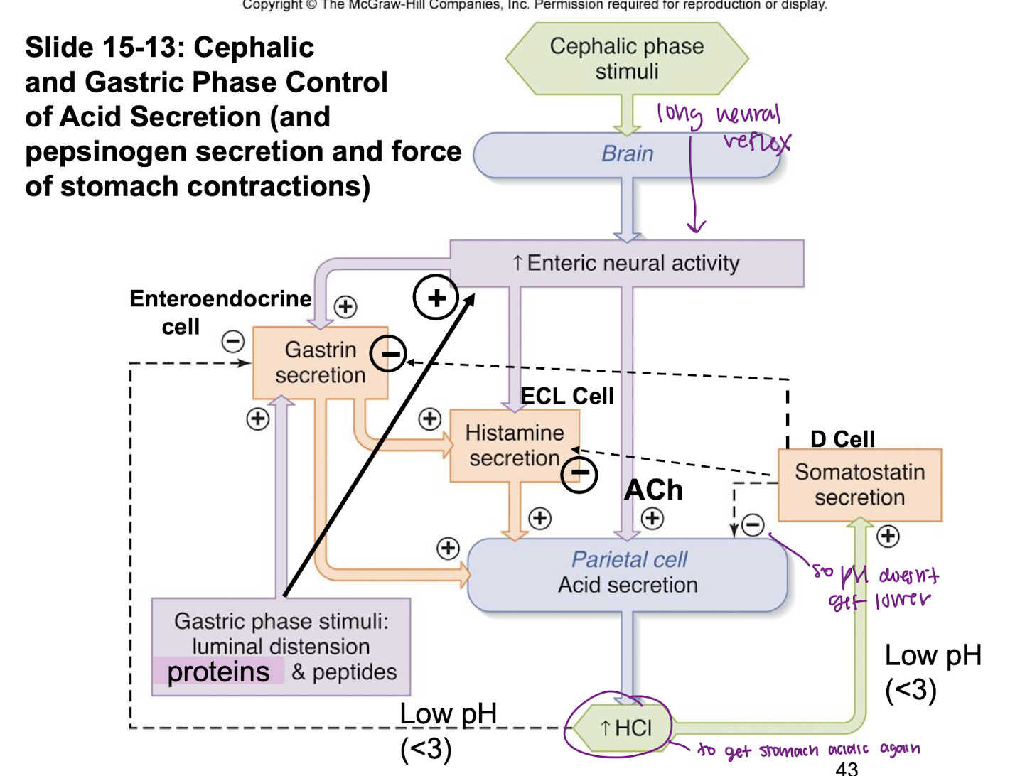 initiated by distension, acidity change, proteins and peptides in the stomach to regulate stomach functions