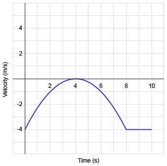 The graph below shows the velocity versus time of a toy car moving across the floor.