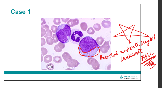 What histological feature is pathomneumonic to Acute Myeloid Leukemia