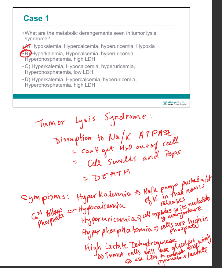 Intracellular K⁺ is released from lysed tumor cells (bc of Na?K pump the cells have lots of K inside them)