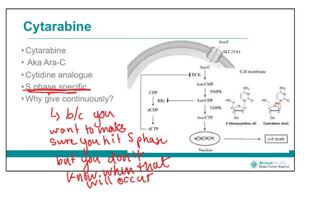 Why is cytarabine given by continuous infusion?