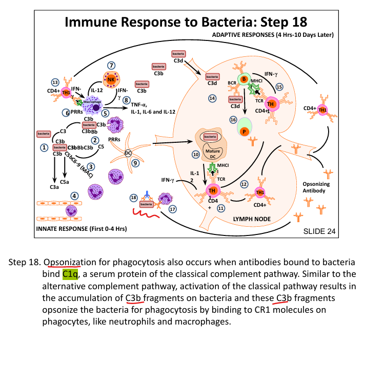 C1q binds Fc region of antibody on bacteria → activates C3 convertase (Classic= C1 binds Fc of antiBody)