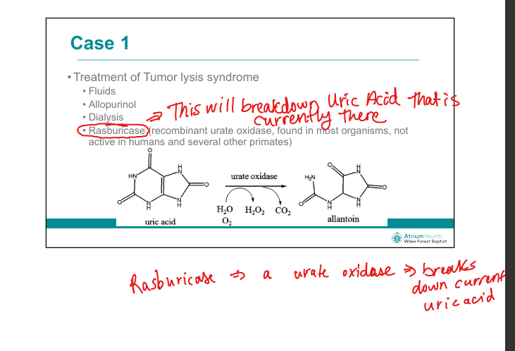 Recombinant urate oxidase → converts uric acid to allantoin (soluble)