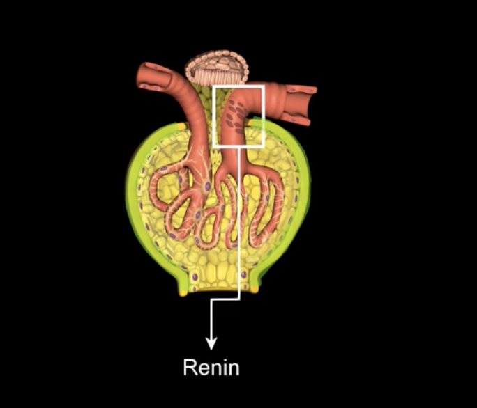 juxtaglomerular (granular) cells, modified smooth muscle cells, release renin in response to signals from macula densa