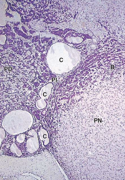 between pars distalis (PD) and pars nervosa (PN)