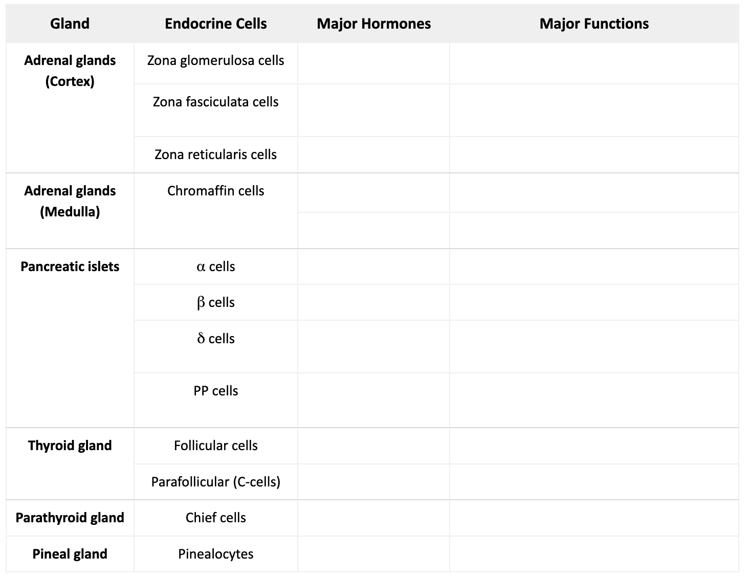 Note: Pancreas has 2 regions (exocrine and endocrine)