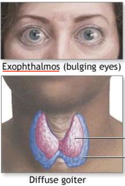 Symptoms: exophthalmus (bulging eyes)