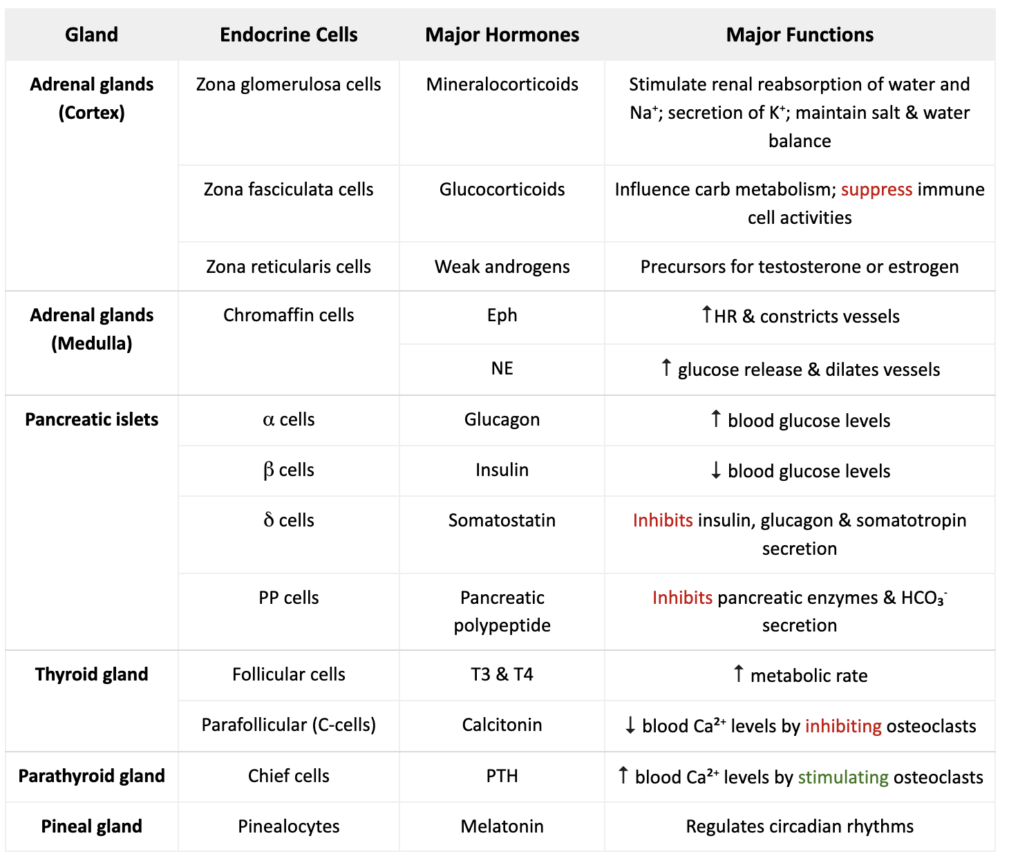 Major hormones produced