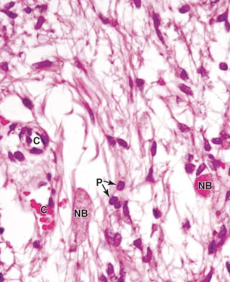 - has modified neural tissues containing unmyelinated axons