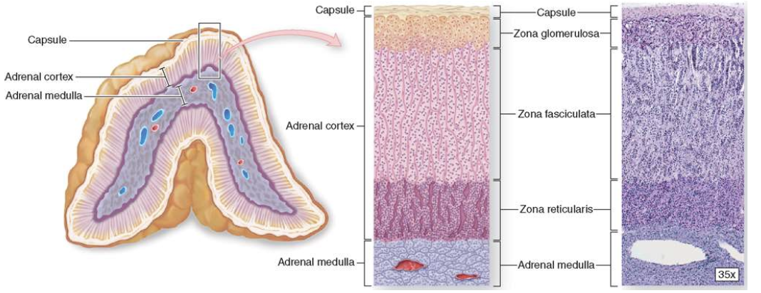 Location: lies inside the capsule and surrounds the innermost adrenal medulla