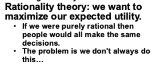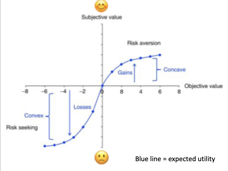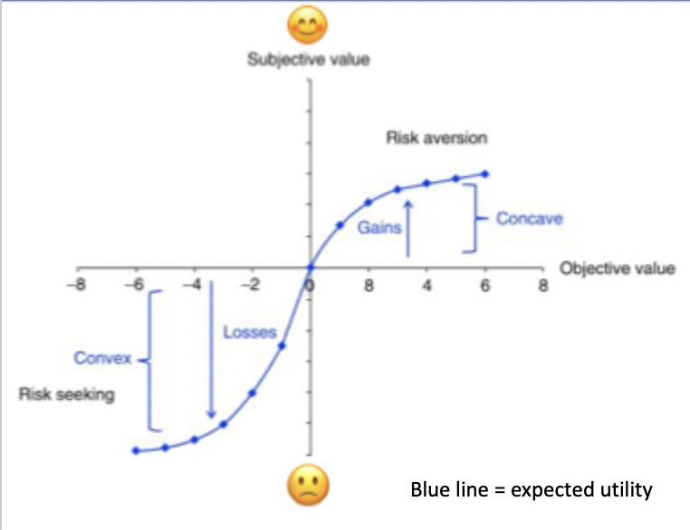e.g. people will pay to avoid risk (insurance) but will also buy lottery tickets (more than expected value)