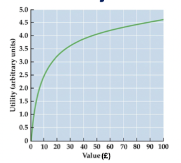 the utility difference between having £0 and £1000 is much larger than the utility difference between £100,000 and £101,000