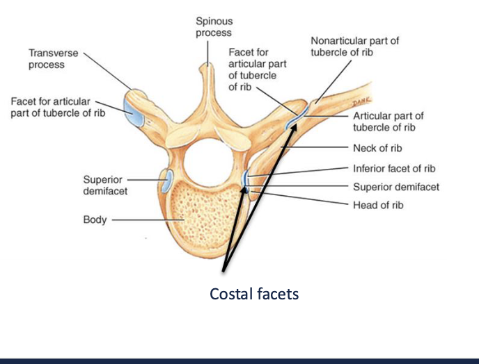 • contains articular facets: articulate with superior costal facet of vertebrae