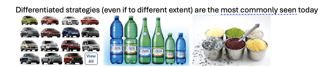 While satisfying the same basic needs, it uses different products to satisfy different preferences that the customers have.