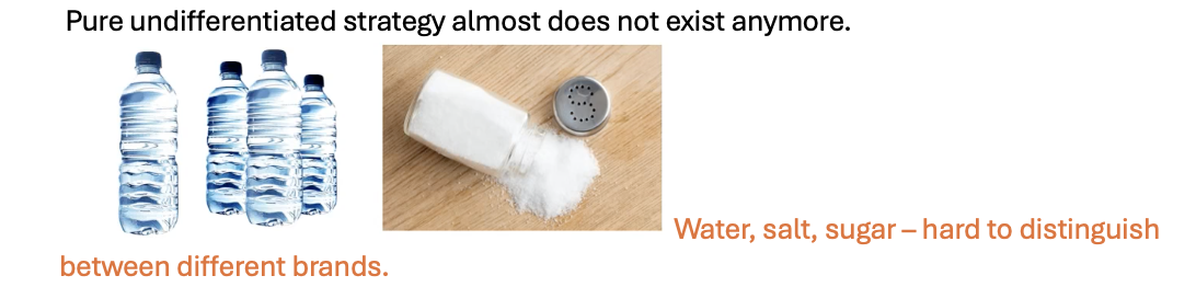 Disadvantage: if in the market there are other products which could satisfy more precisely the consumers’ needs, it is hard for undifferentiated strategy to be successful. Possibility of substitutes.
