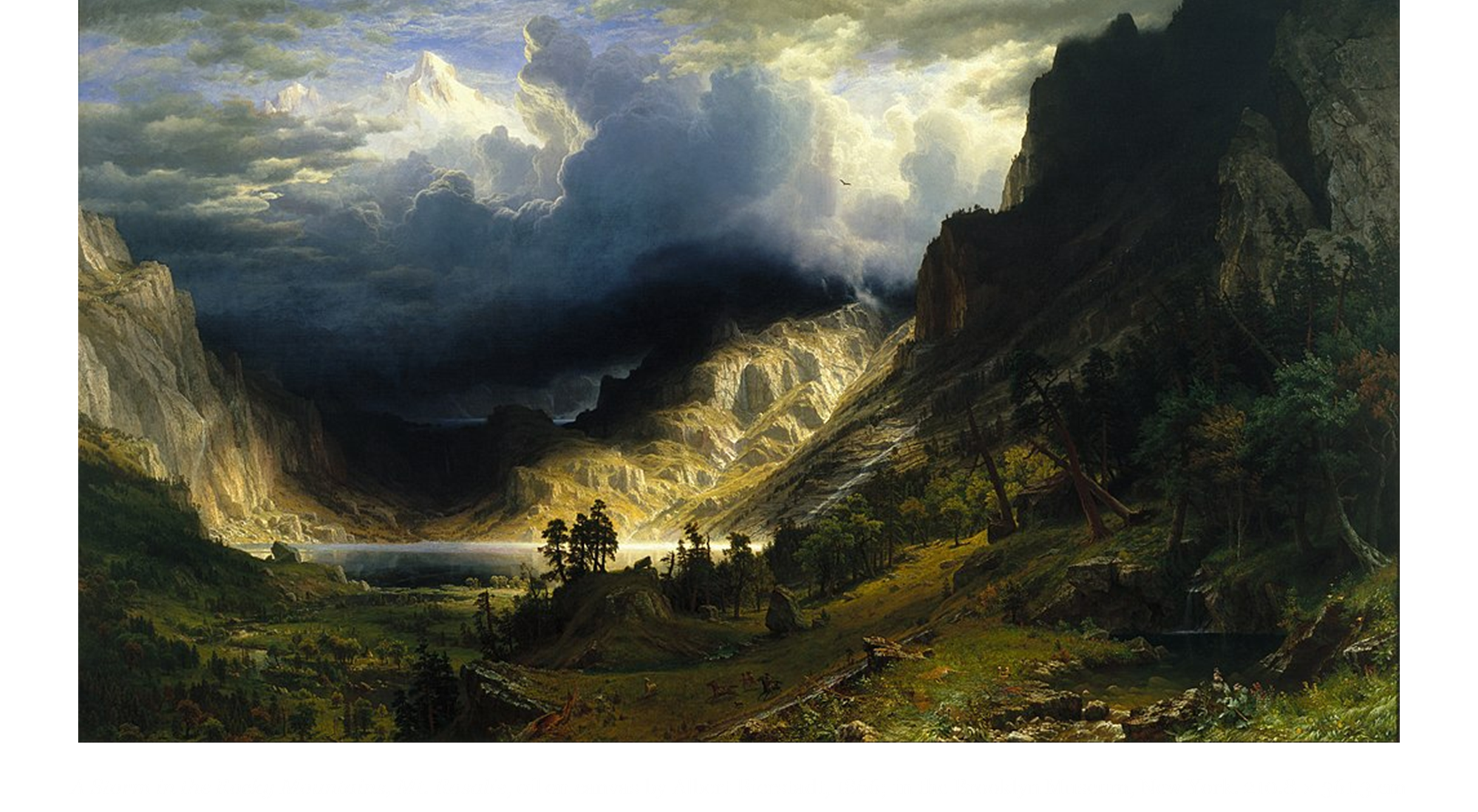 A Storm in the Rocky Mountains, Mt. Rosalie, oil on canvas by Albert Bierstadt (sublime and picturesque)