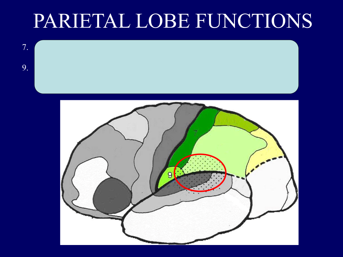 (parietal lobe) awareness; sensation; location of objects