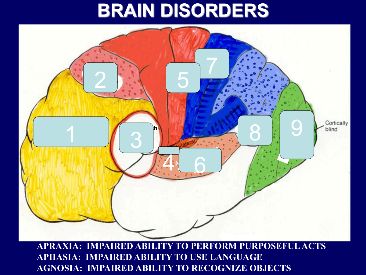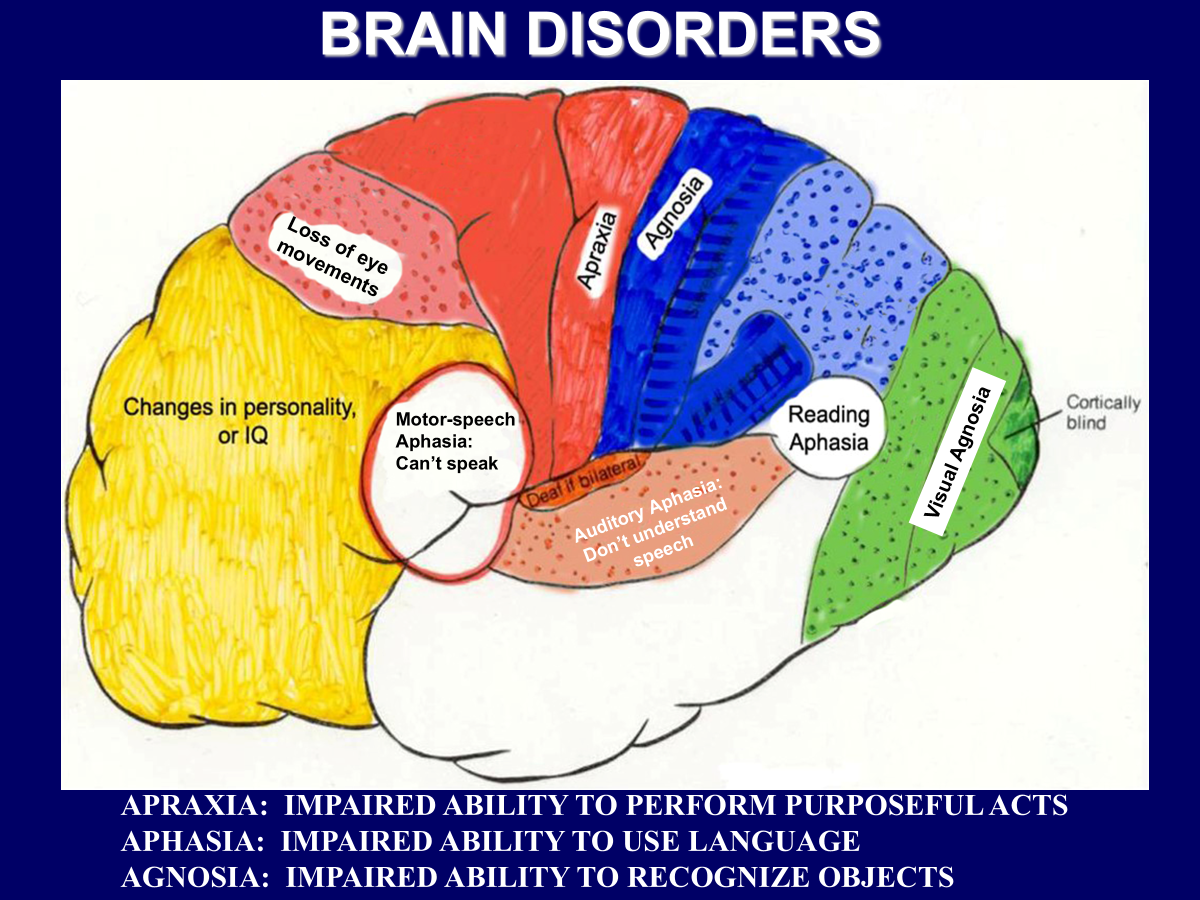 Apraxia → impaired ability to perform purposeful acts