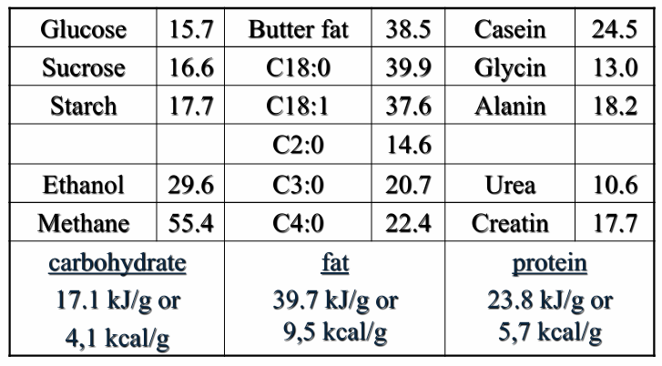 Gross energy (GE) = heat released during complete combustion of a food to CO2 and H2O