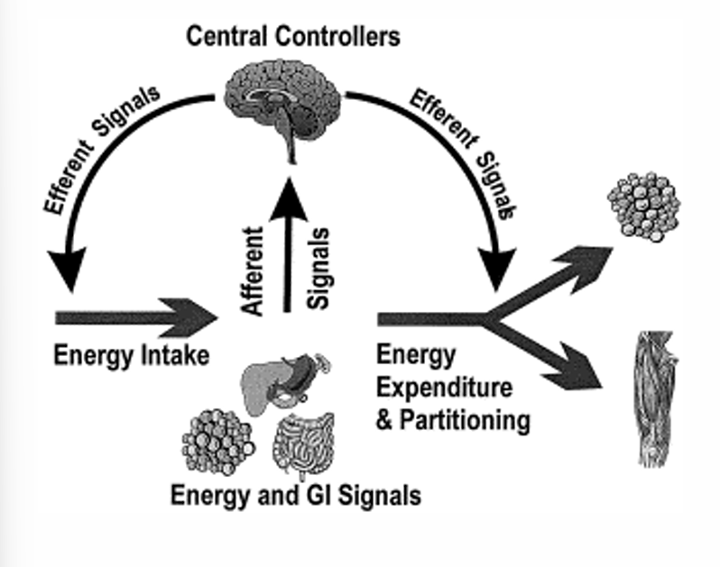 In short time-intervals (e.g. hours), energy-intake does not correspond to energy consumption