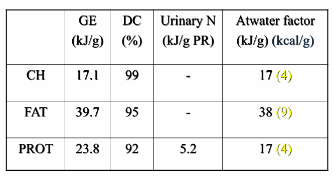 Determination of energy value: Atwater coefficients